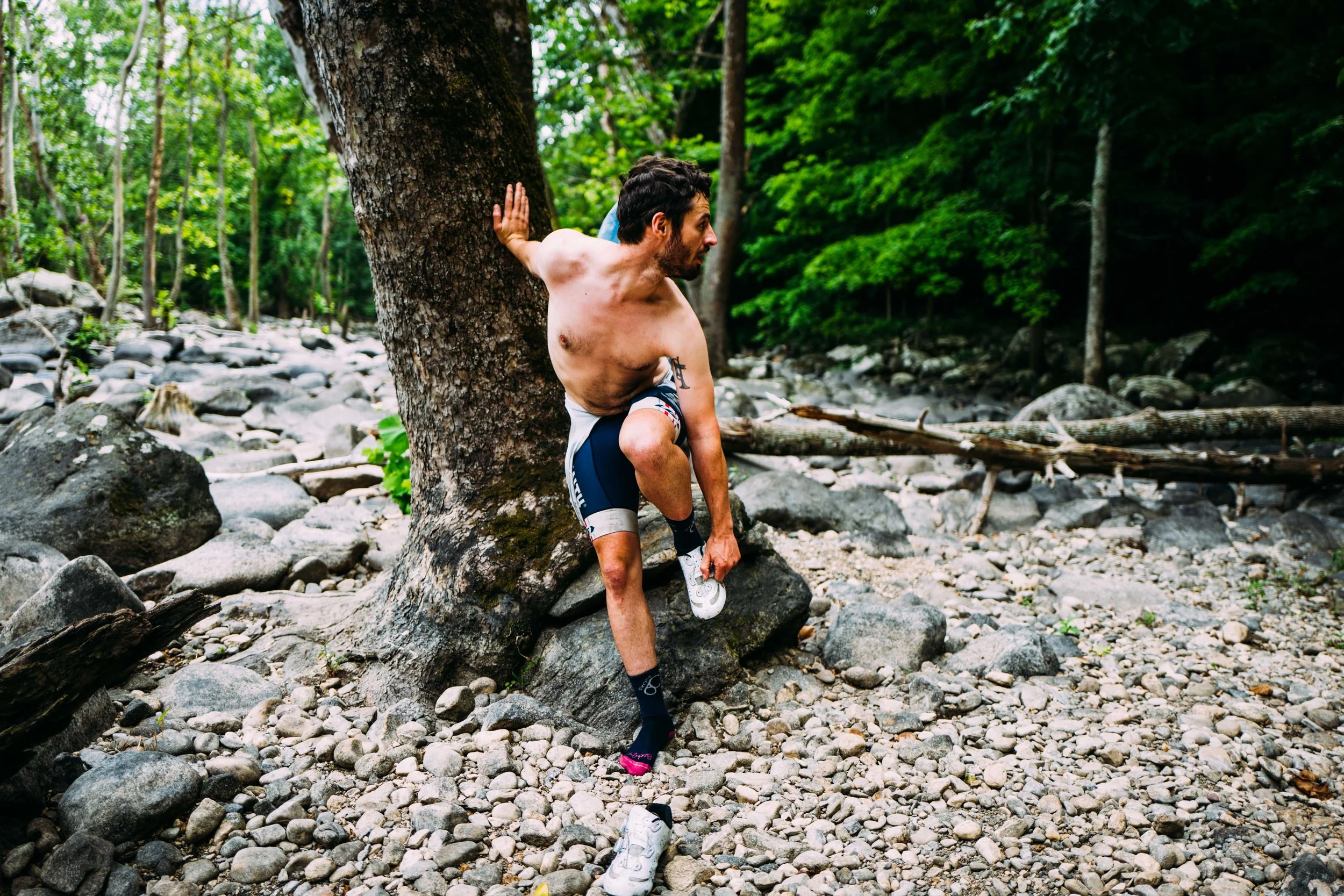 No one was eager to call an end to a lazy morning in the woods but shortly after the stage ended we begrudgingly packed up the campsite and started the hike back down to the road. It was officially time to ride bikes.