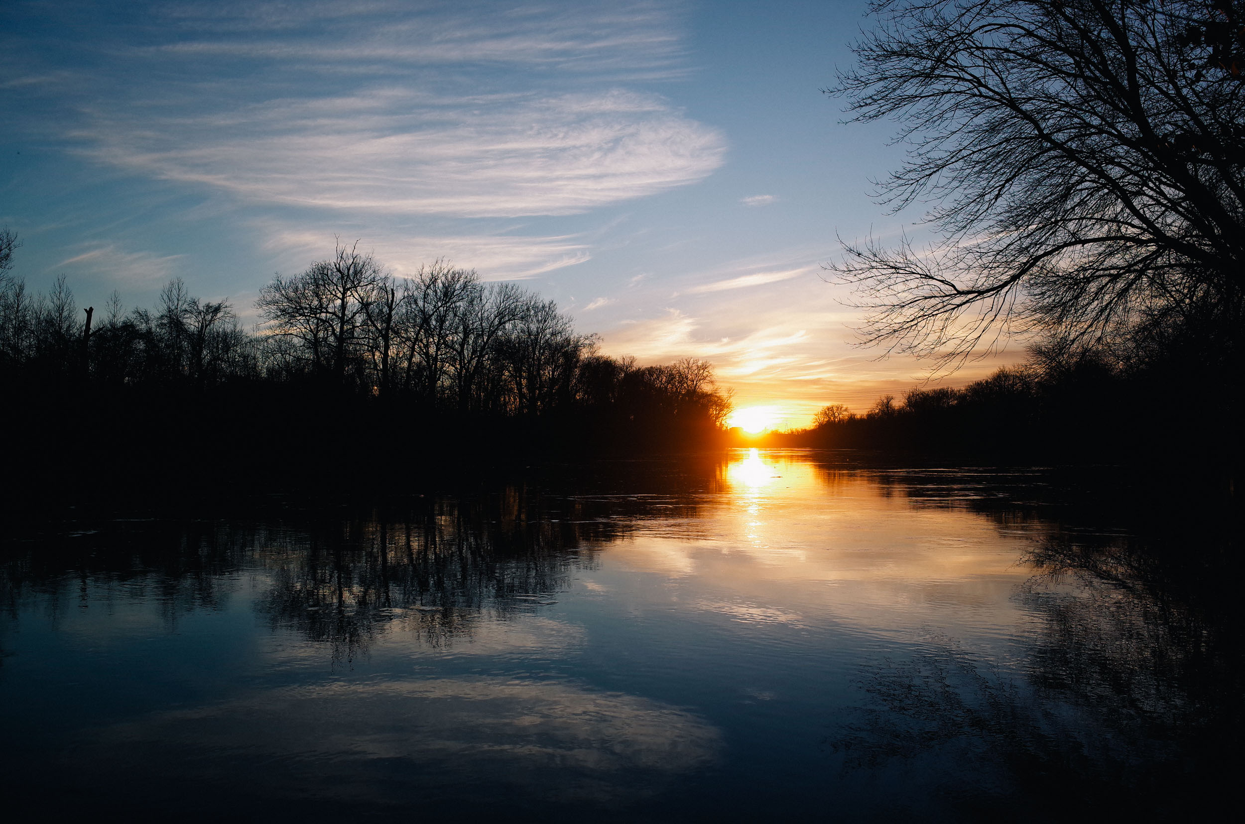 It's hard to imagine what it must look like today - as we traversed the 40 foot tall levees the skies were blue and clear and the river wasn't even visible through nearby tree cover. We rode until the darkness encroached and even got my parents out on a section of off-road trail for the first time. This led to an extended discussion of the merits of cyclocross bikes (my dad is apparently a strong believer in n+1) as we watched the sunset from the banks of the Meramec with little concept for just how much would change over the next five or six days.