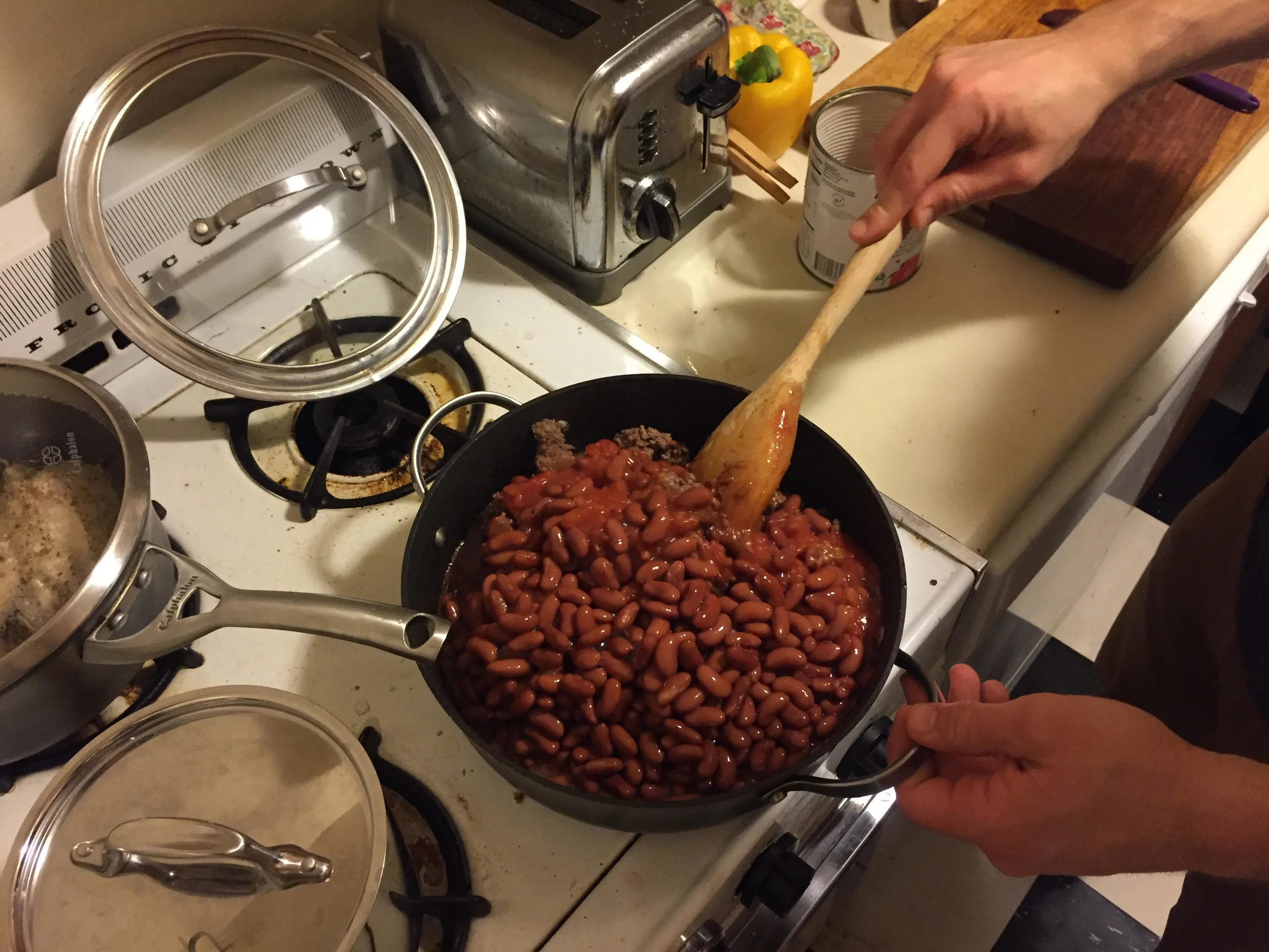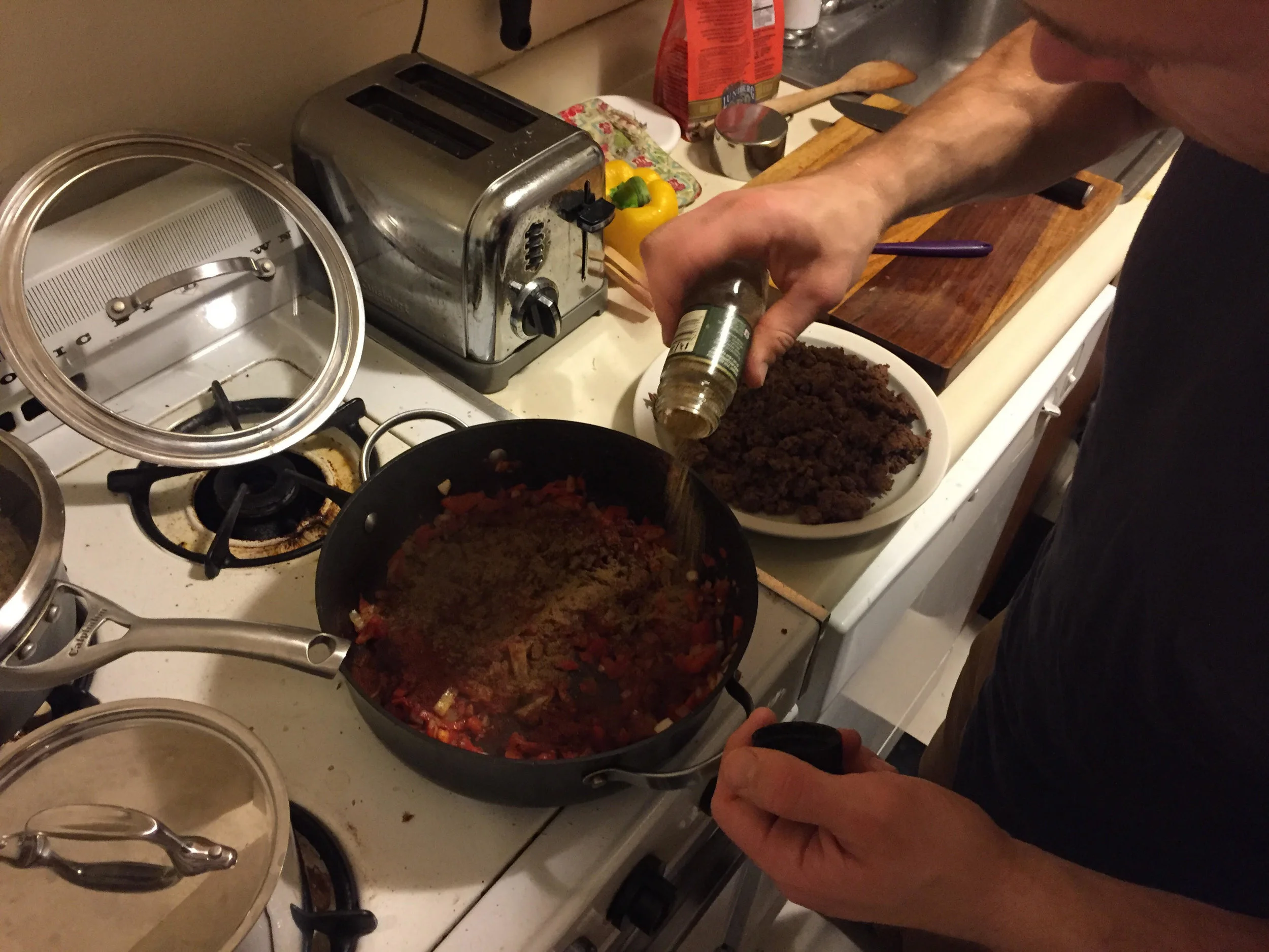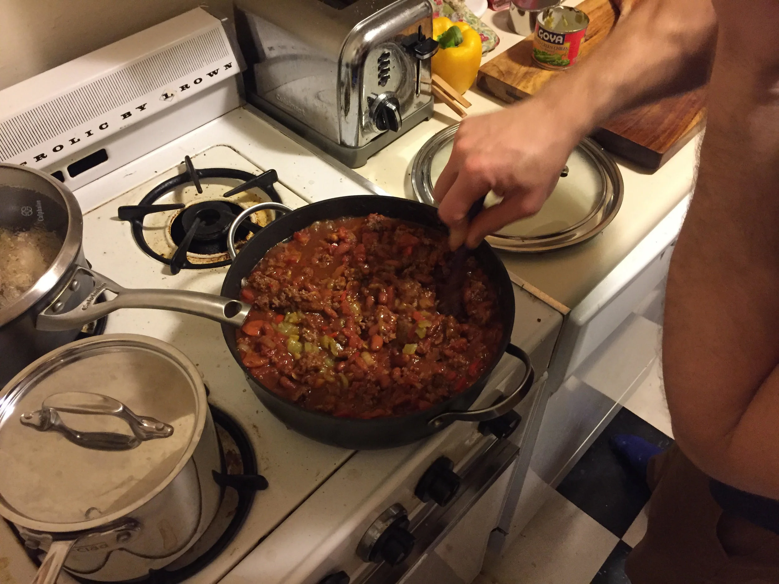 After the mise en place, the rest of the work came together quickly and easy. We put the rice to a simmer, began to braise chicken and then got to work on browning the beef and setting up the chili. Once that was done, we were left with some downtime to discuss training plans, download data and analysis wattage – because what else do cyclists do when they are together??