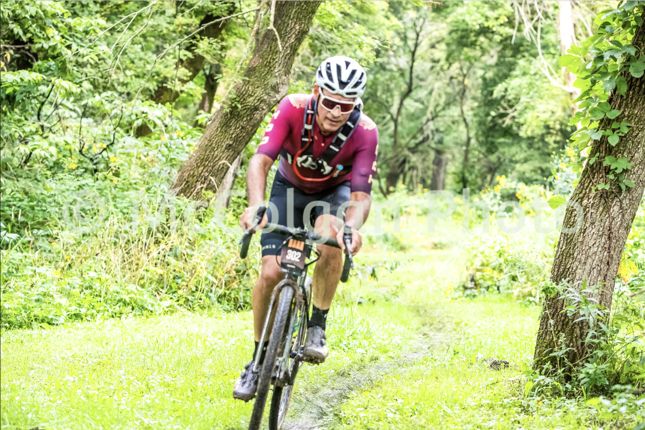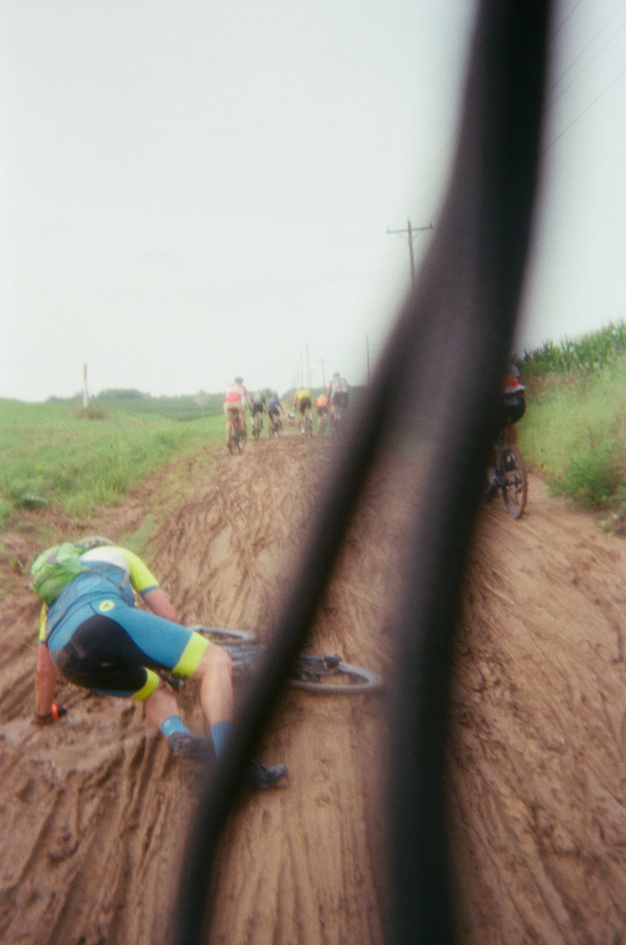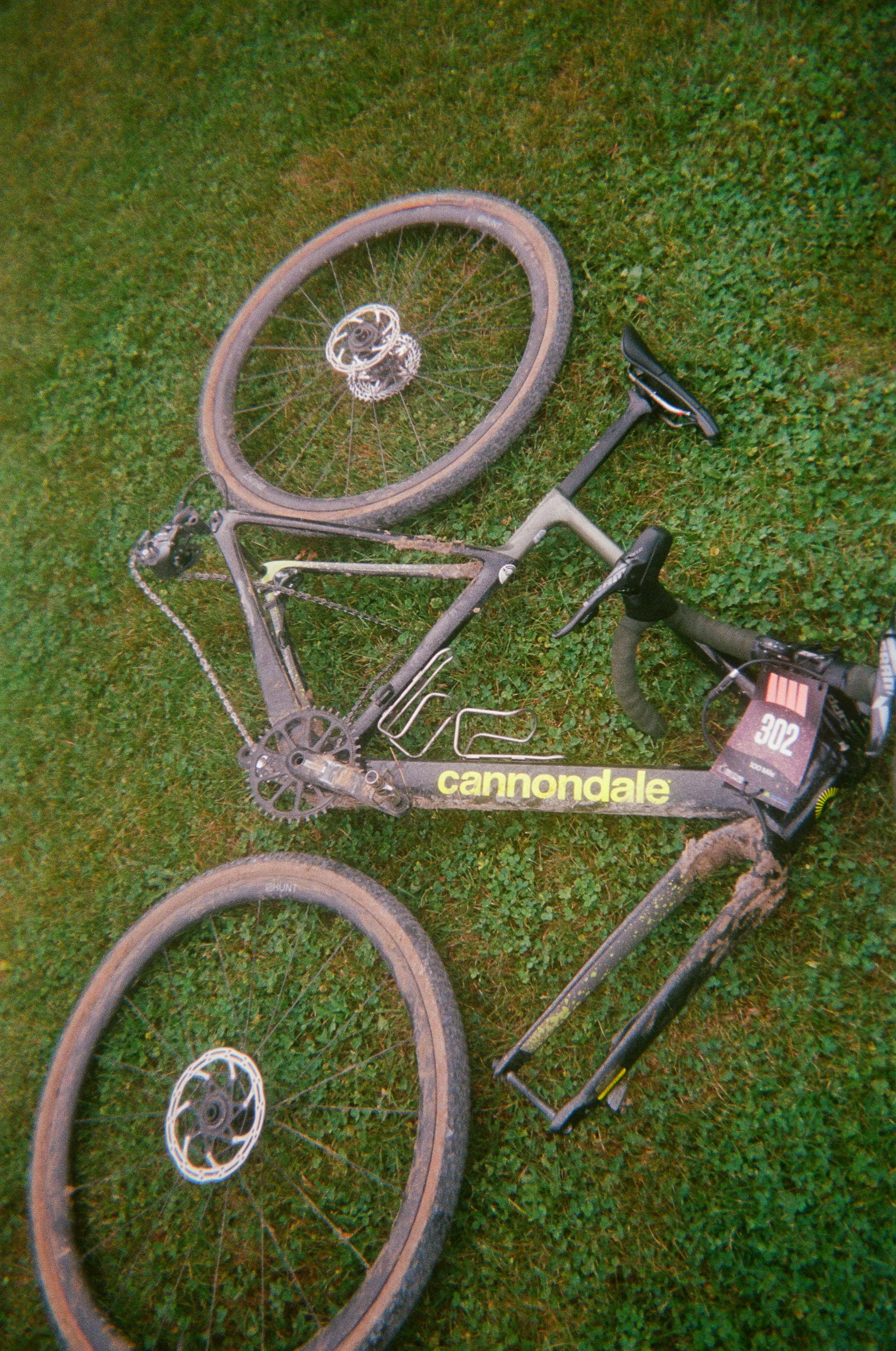 At about mile 23 we hit the first of the B-roads. These are unmaintained roads and we were warned of peanut butter mud conditions after rainfall. While green is grip (cx is here, after all), that doesn’t hold true when grass and sticky mud mix, and many of us very quickly found ourselves on bricked bikes. I found a straw and used it like a piece of string to clear the mud from the tires, and was glad yet again for my Crank Brothers Eggbeater pedals. There were seven more B-roads to come, each between one and two miles in length. Though not all of them were muddy, this first one fully strung out the groups. The B-roads were the decisive feature in both M and W’s pro/elite fields.