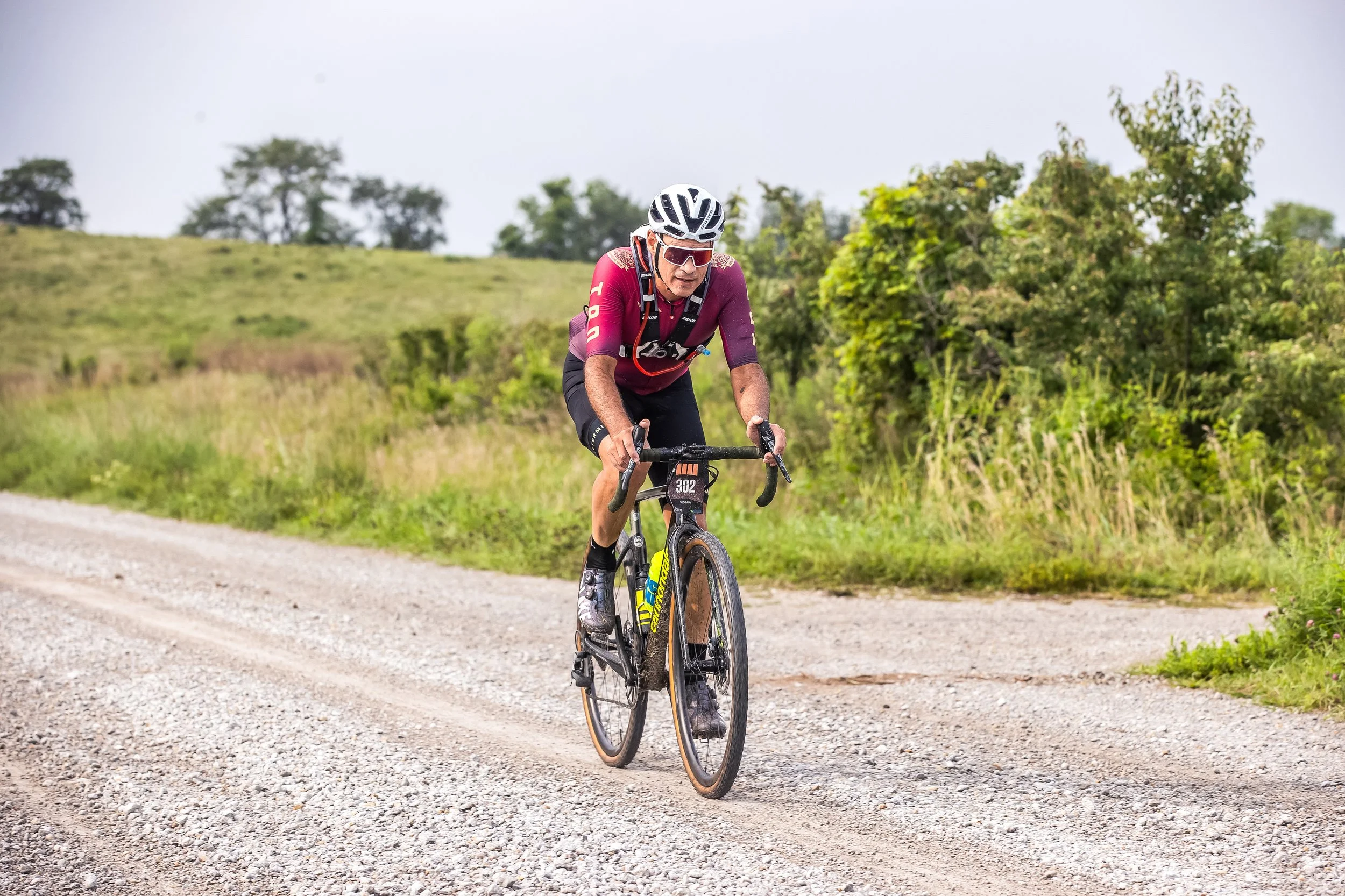 The Open 100 that I signed up for started at 8:30. The rural gravel roads consisted of climbing or descending 5-7 percent gradients with almost no flat stretches, totaling 4,500ft elevation. Most climbs were short enough that you could maintain momentum from the downhill to get most of the way up. This would prove helpful in keeping momentum towards the end of the race, too.