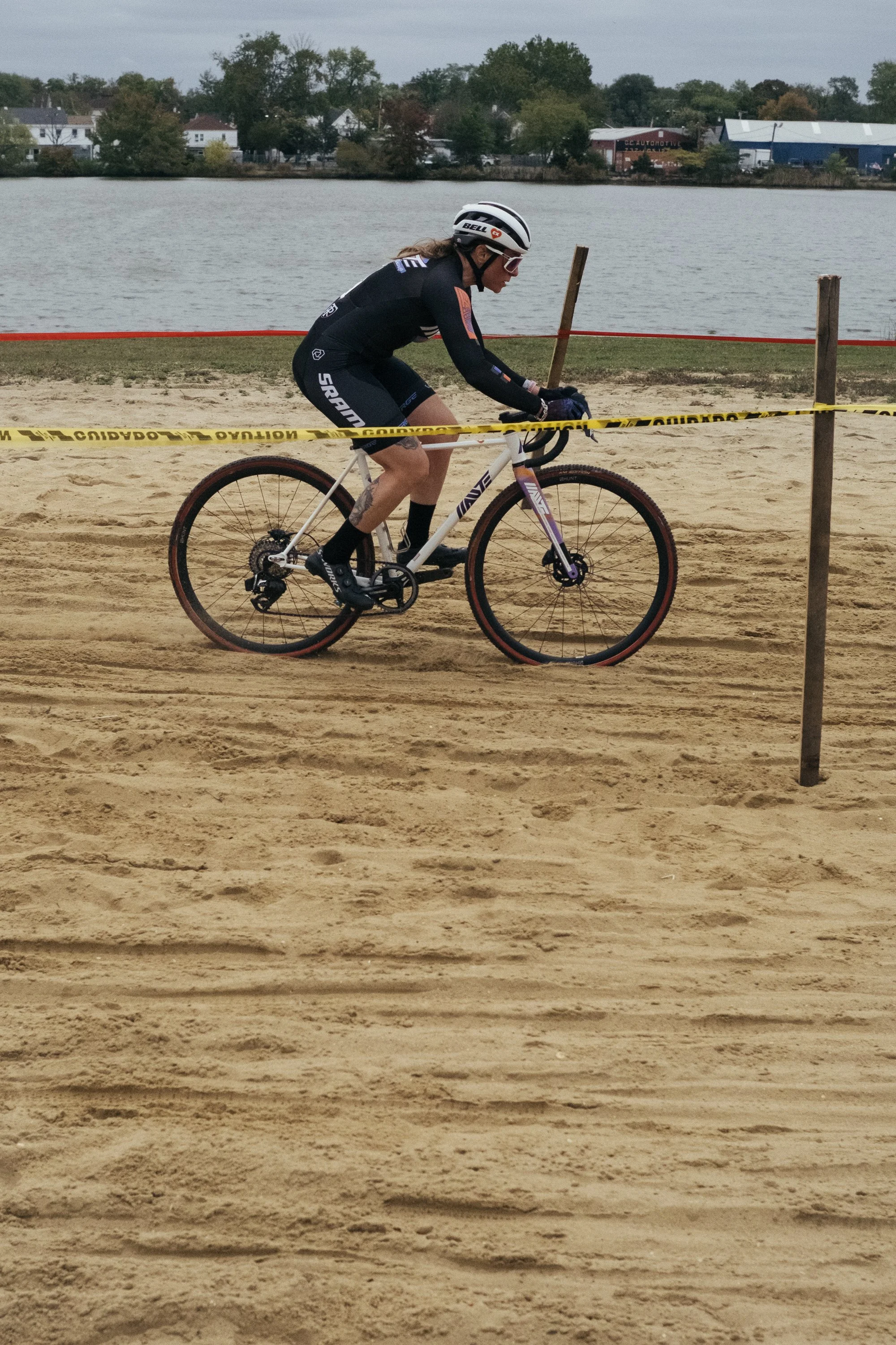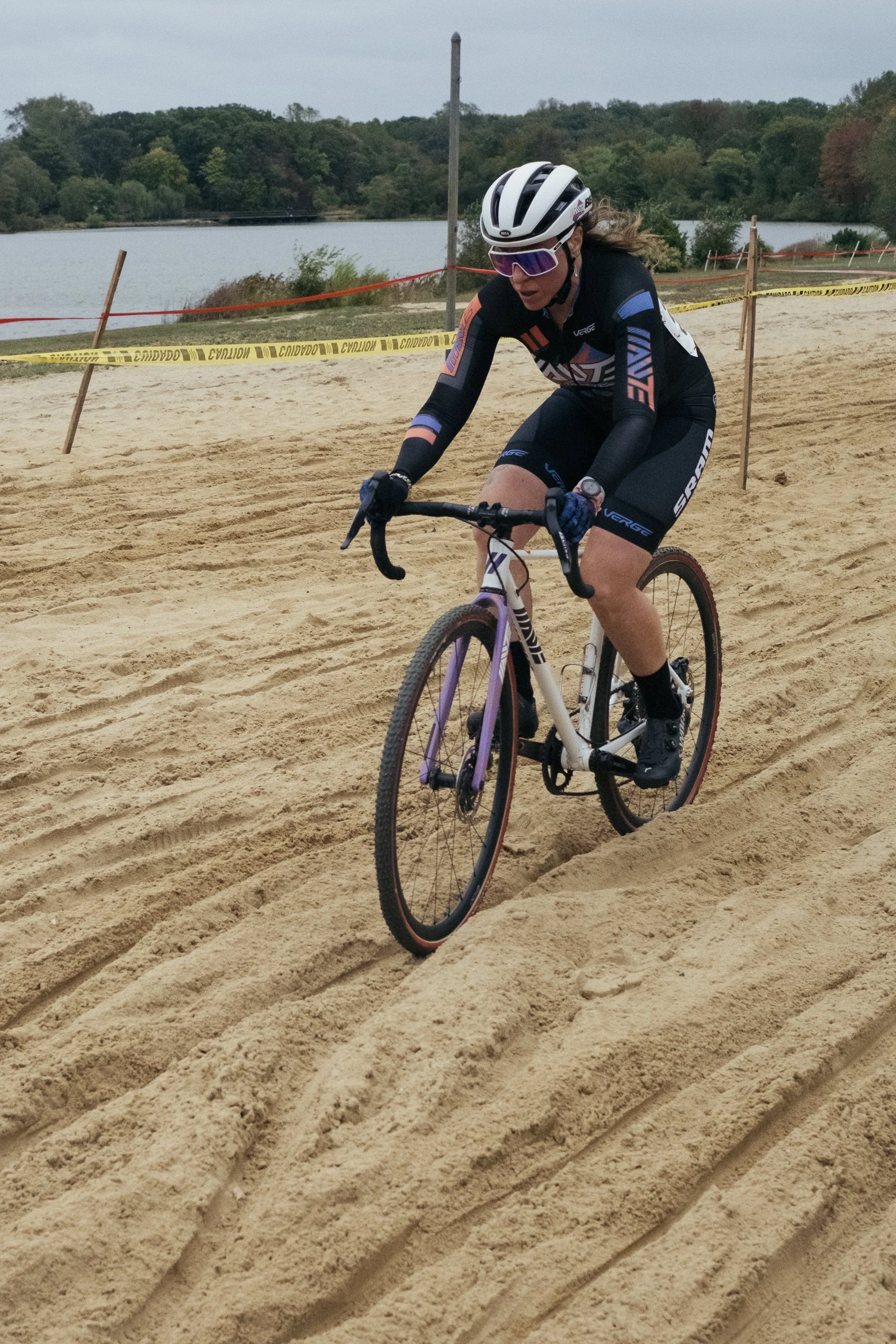 My compatriot Karen and I are loaded up early. 6:20 in Secaucus. We have bagels in our hearts and plans of pre-ride on the brain. The womens/open 3/4/5 field is racing at 10:30 am. I won't have as many pre-ride opportunities, but I make due. A loop of the course with Lucia, and I mark out my pain points to session with what time I can. I decide the sand is a runner. I'm not confident about a hot entry and not bogging down towards the end, resulting in an awkward dismount and then run anyways. My legs worked well at Belltown. They may serve me well again. I hit the off camber corners a few times. I check the ones near the top of the hill at my buddy Frank’s suggestion. I decide to focus on the Belgian stairs. I feel my dismount on the slight uphill to run up is lacking. Ride. Unclip one foot. Slow in. Swing over. No good. Doesn't feel right. Again. Ride. Unclip different opposite food. Swing over. Twist my food out. Better. Repeat. I think we have a plan, so I make for the parking lot to get into team kit.