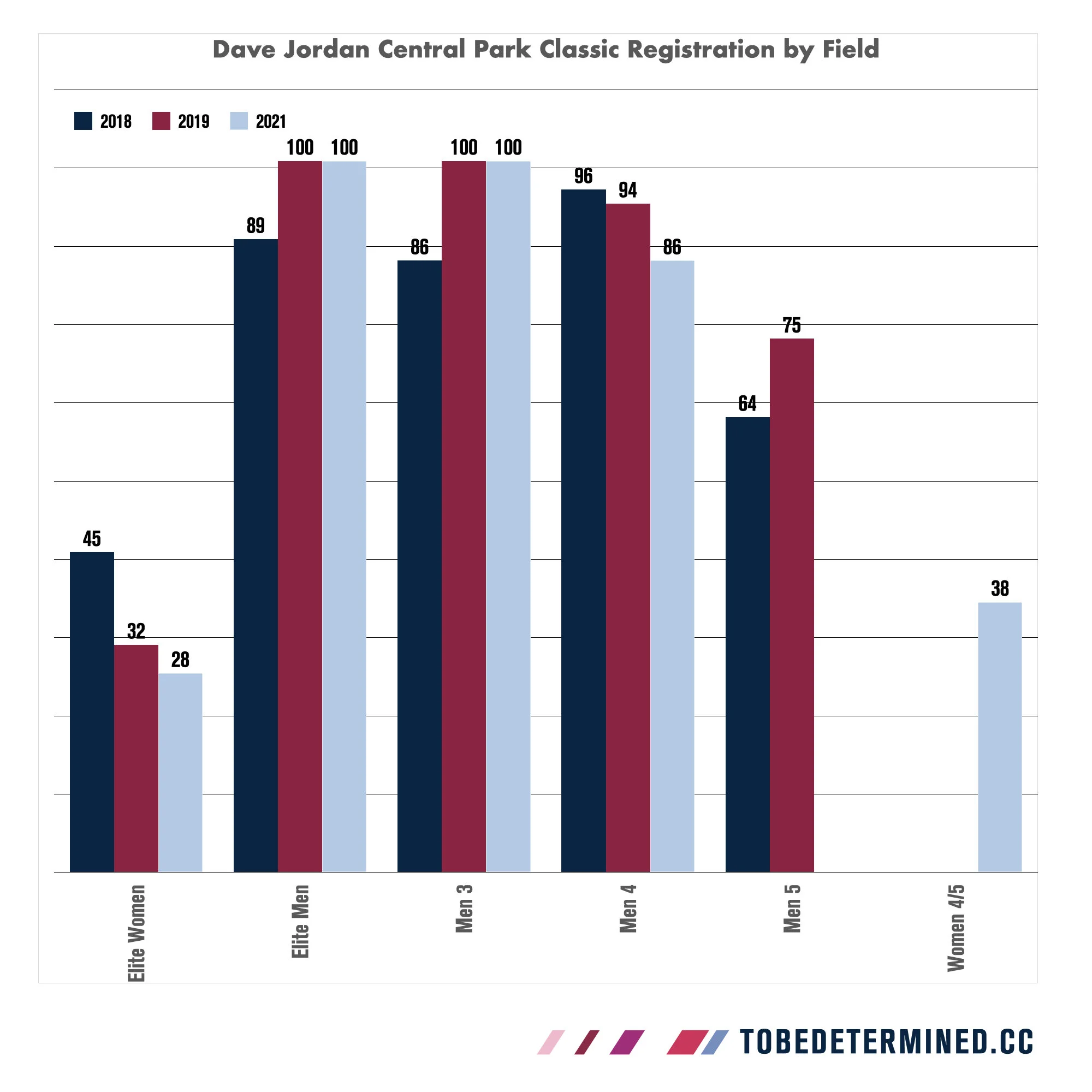Total registration numbers are down compared to recent years, but that is a function of field structure changes. Even though the headline number is down, all men’s fields are totally sold out, and total women’s registration is up from recent years. Just based on registration, the state of racing in NYC seems really strong. However, Bikereg data may not end up being quite the predictor of turnout that it usually is. A few weeks ago, CRCA announced it would allow all racing members to opt-in to free registration for DJCPC, given the abbreviated season we’ve had so far. Given the free opt-in option, it’s possible that more than usual will be no-shows at the start line.