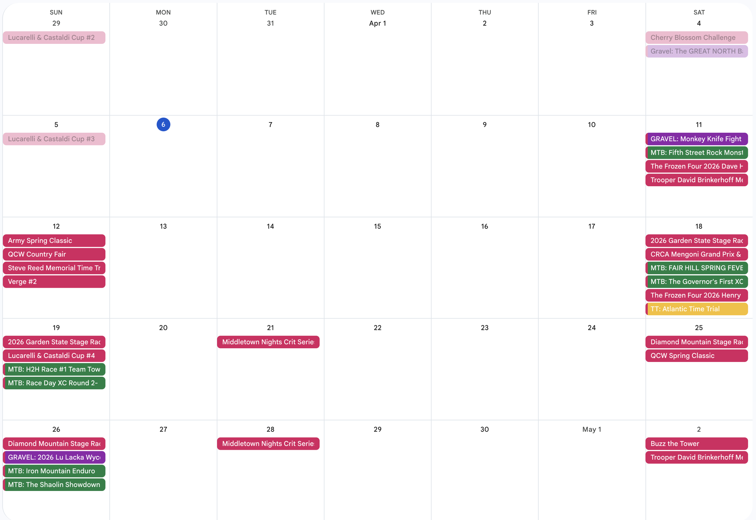 TBD Race Calendar: April 2026