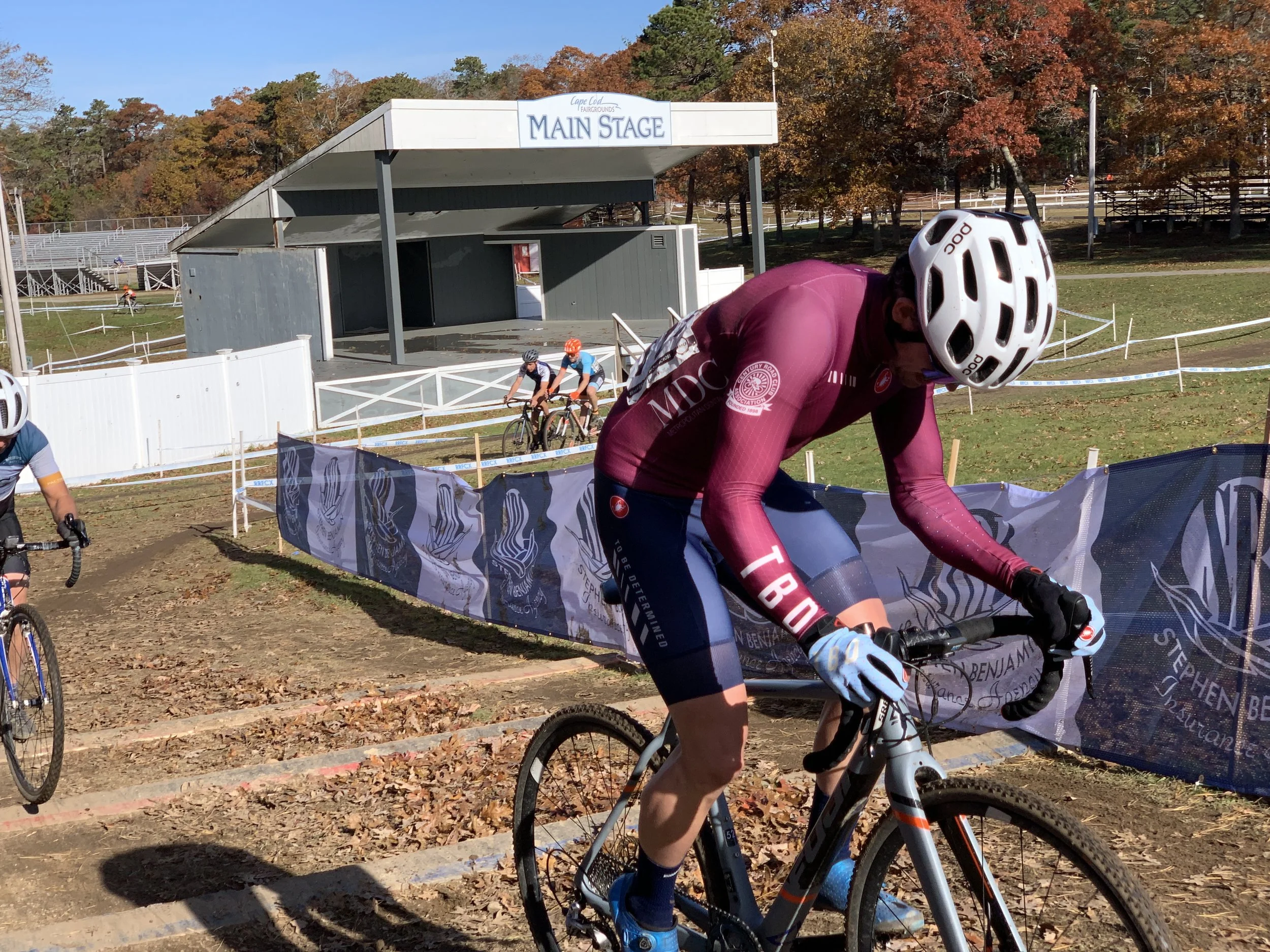 The Really Rad course has stayed largely the same throughout the years and is very fast when it is dry. There isn’t much to speak of in terms of terrifying obstacles or really noteworthy features - there’s no Mansion Hill or Noho pro line - but it’s interesting, challenging, and rewards both driving and pedaling your bike well. In terms of features, there’s a long sandpit (rideable), some Belgian stairs (rideable), some twisty bits between trees that often have some pesky acorns, and lots of places to put the power down. While I wouldn’t call it a grass crit, this is definitely a course where pedaling is your friend and you should use every bit of pedal you can muster. There’s almost no bottlenecks to speak of, tons of space to pass, put down power, and claw back time. The start/finish straight especially is a very long paved section where you can really get some speed, but try to also remember not to start your sprint too early in the last lap.