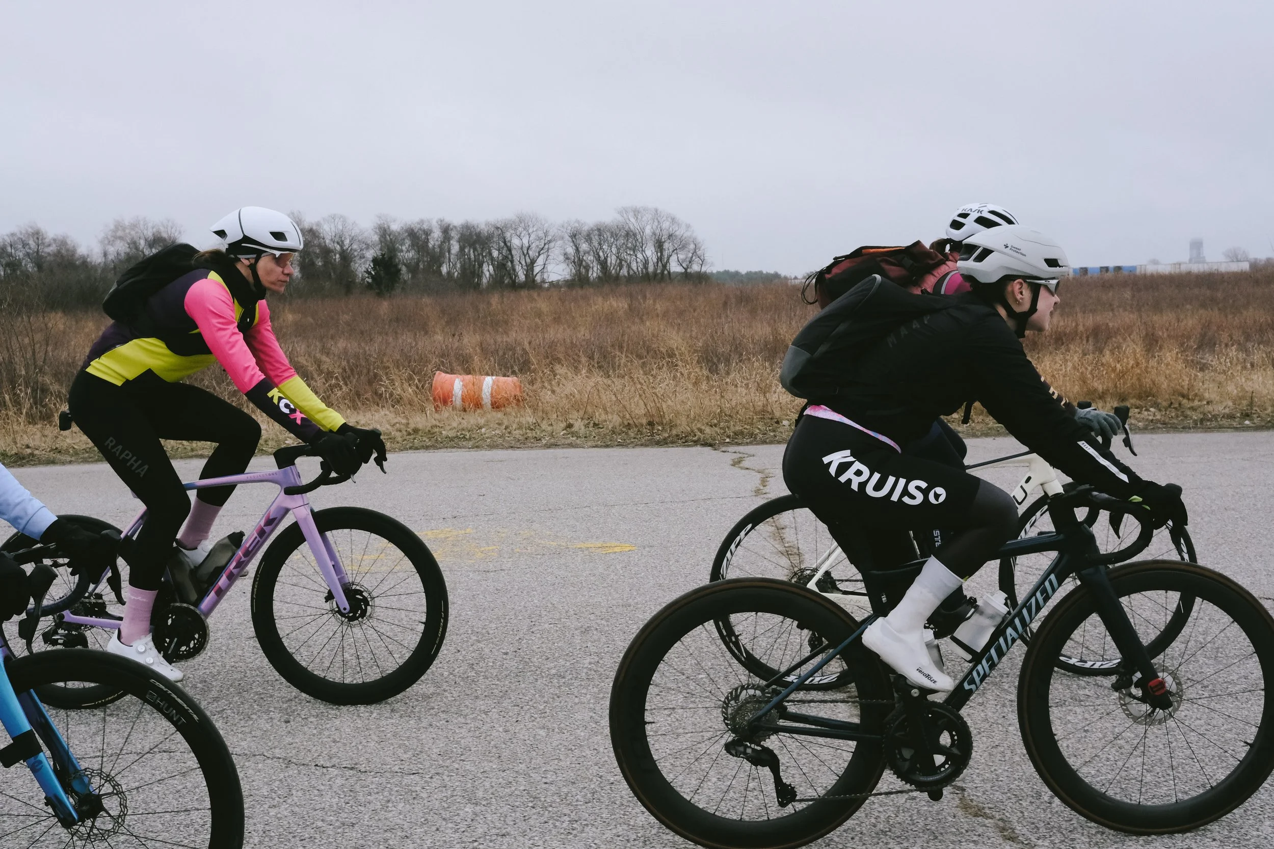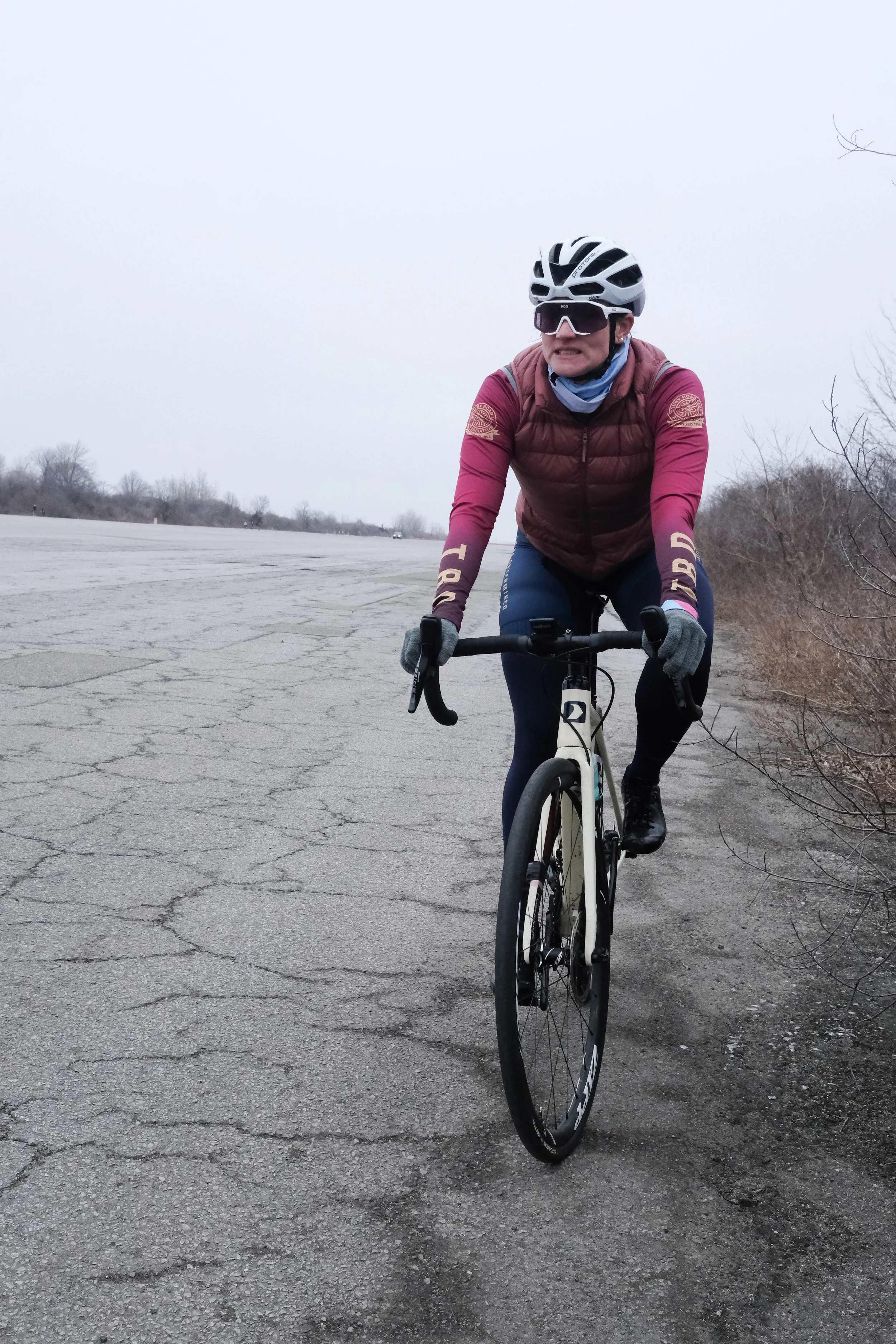 Next, we regrouped to work on our sprint train. With riders from Bad Pony, Continental-Ostroy, Kruis, and TBD, we largely paired off with our teammates in hopes of building a bit of cohesion for races to come. There was a nice cross section of runway, with a wind coming out of it for us to practice a sprint out of the final corner on the flame rouge. Our captains coached us on how to manage our pace line and about the front rider leaving a lane open in the corner with enough room for our train to come through. Ideally we would block out our competition in the process. Our group rotated through positions and I largely found myself as our sprinter. The wind was brutal to rush into, but with a few solid efforts, we made for the more calm sections of the main runway for a bit of more focused on practice.