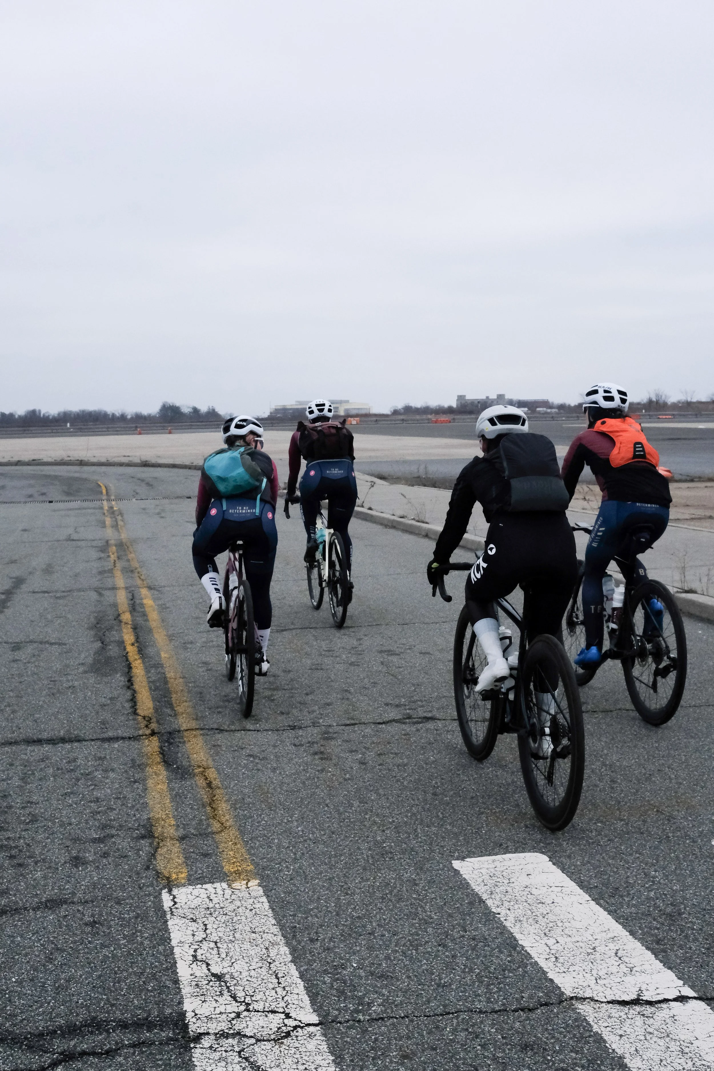 Organized by the TBD Women's squad, and spearheaded by Leah Goldberg and Shane Ferro, our squad for the day met up on a chilly Sunday to link at the end of the first Verge Series race in Prospect Park. Once racers and other participants were assembled, we made our way for Floyd Bennett Field. With fairly light traffic, we made use of the time practicing our group riding, forming side by side pace lines when feasible, and flattening out single file as necessary. In no time, we were crossing the Belt Parkway with the old airfield in sight. I had never race or ridden out at the airfield. My stoke was high.